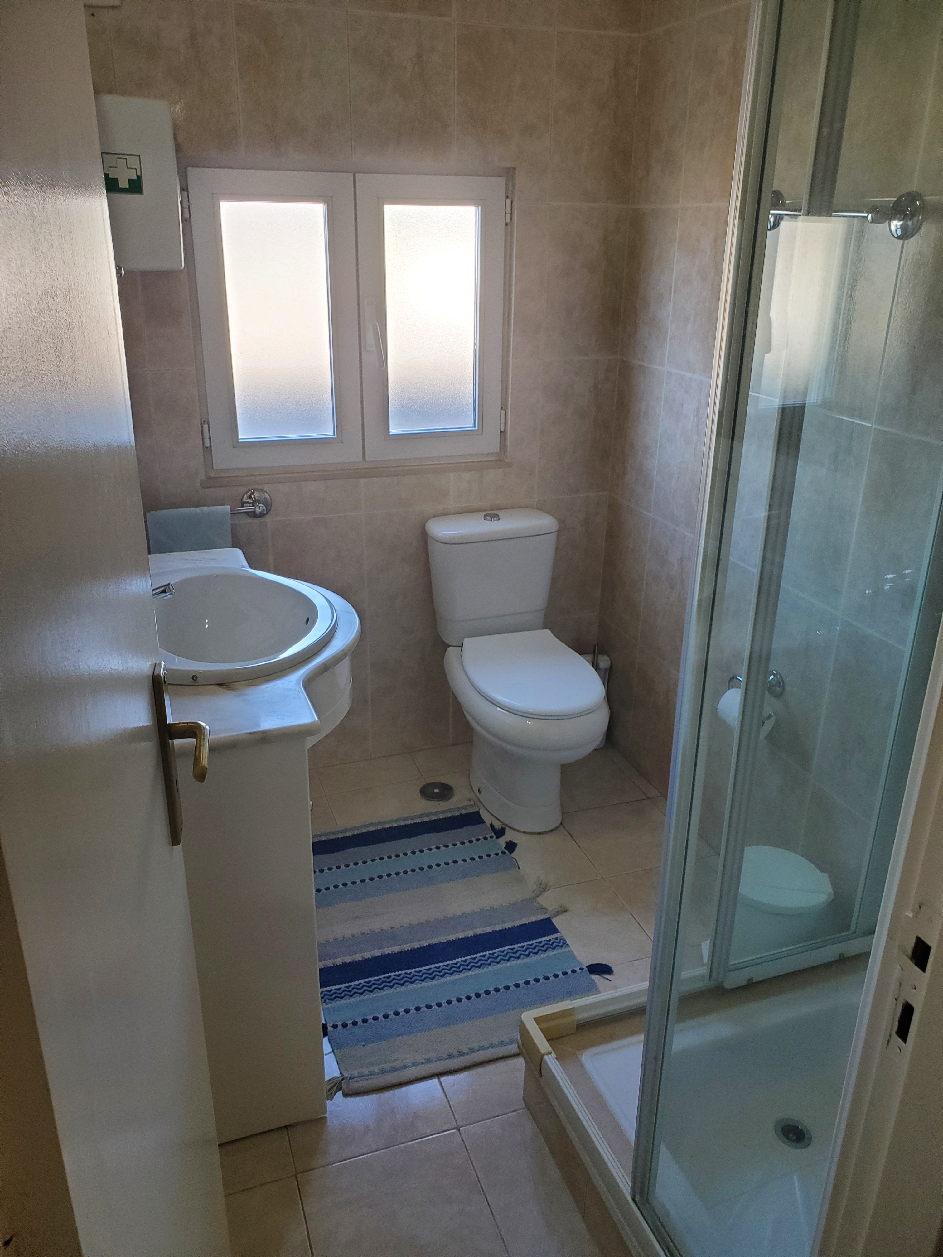 Appartement de 106m2 au 1er étage climatisé comprenant Cuisine équipée, salon/salle à manger, 3 chambres avec lits double, 2 salles de bains.